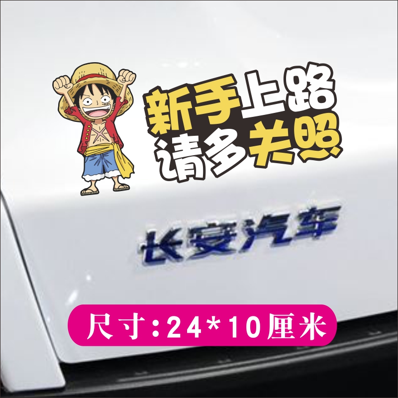 新手上路车贴海贼王路飞贴纸创意文字个性可爱防水遮挡划痕车贴 Taobao